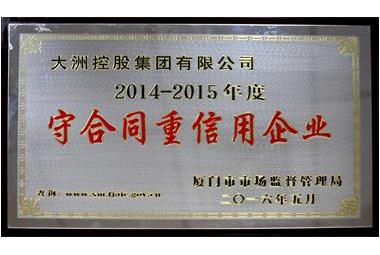 2016年7月27日上午,廈門市2014-2015年度守合同重信用企業(yè)經(jīng)驗(yàn)交流暨表彰大會(huì)于國際會(huì)議中心隆重舉行。大洲控股集團(tuán)有限公司榮獲“2014-2015年度廈門市守合同重信用企業(yè)”榮譽(yù)稱號(hào)。